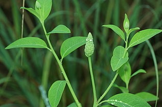 Là cỏ hàng năm, bán thủy sinh, một lá mầm, có thể cao tới 50 cm, không có lông, màu sáng. Thân thẳng đứng, nằm trong bùn, không lộ rõ. Lá bóng, có đáy tròn hay hình tim, mũi nhọn, dài 2-12,5 cm, rộng 0,5-10 cm, cuống xốp rỗng, dài 10-20 cm, phát triển từ gốc. Phát hoa dạng chùm đính trên cuống đối diện với bẹ của lá bao hoa, gồm 3-25 chùm hoa màu tím hoặc cam. Cuống hoa dài 4-25 mm. Quả dài khoảng 1 cm, chia làm 3 thùy. Hạt nhiều, hình thuôn, có gân theo chiều dọc, dài khoảng 1 mm. Sinh sản hữu tính (bằng hạt) và vô tính (bằng củ)