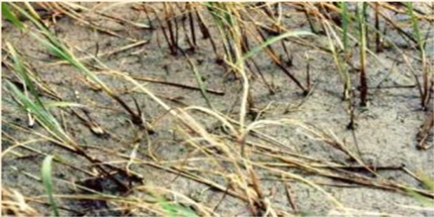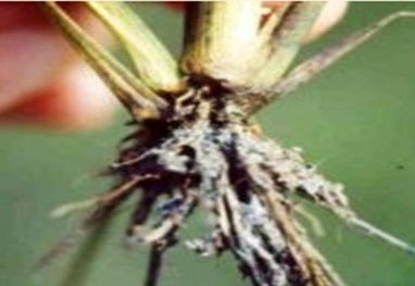 | Hình 1: Những cây lúa bị bệnh. | Hình 2: Rễ lúa bị thâm đen. | Hình 3: Đốt lúa bị bệnh. |